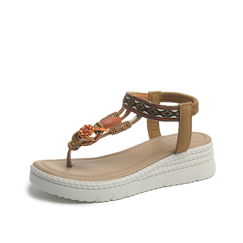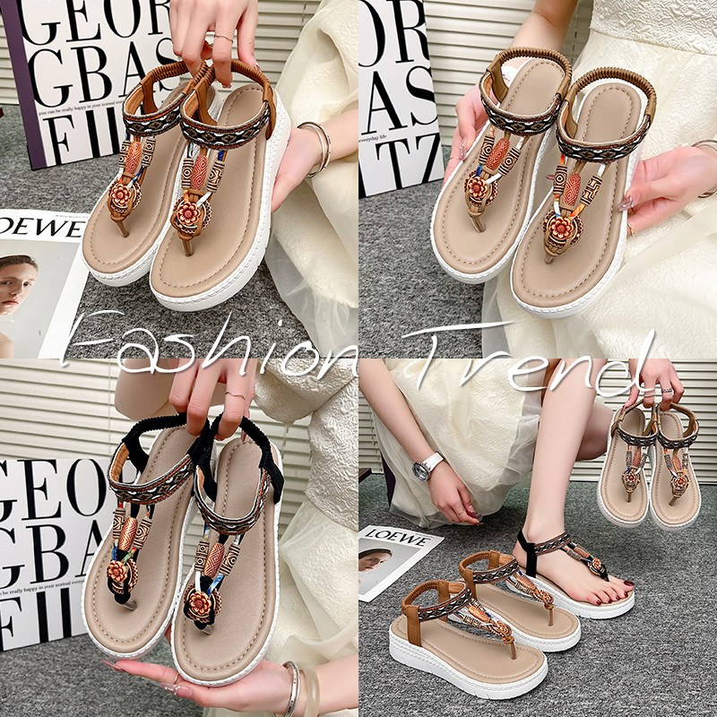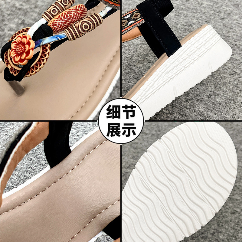 水钻扣式坡跟夹趾凉鞋女夏季百搭厚底夹脚凉鞋民族风装饰厚底凉鞋