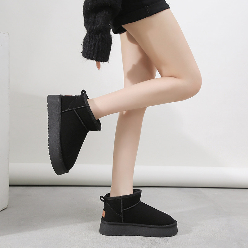 miu家厚底雪地靴女冬季真皮短靴羊毛侧拉链增高厚底加绒毛毛棉鞋