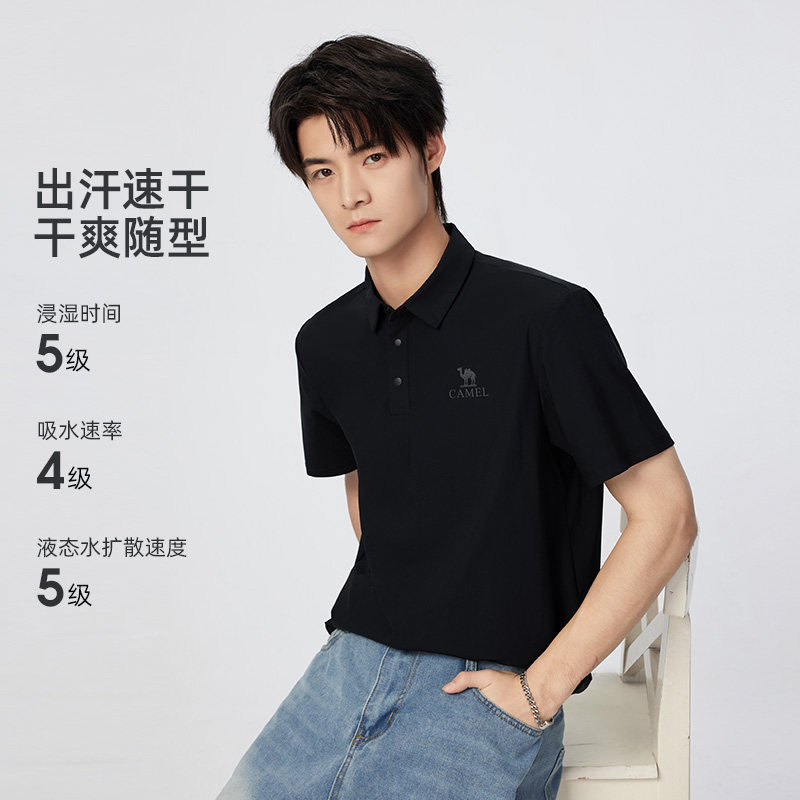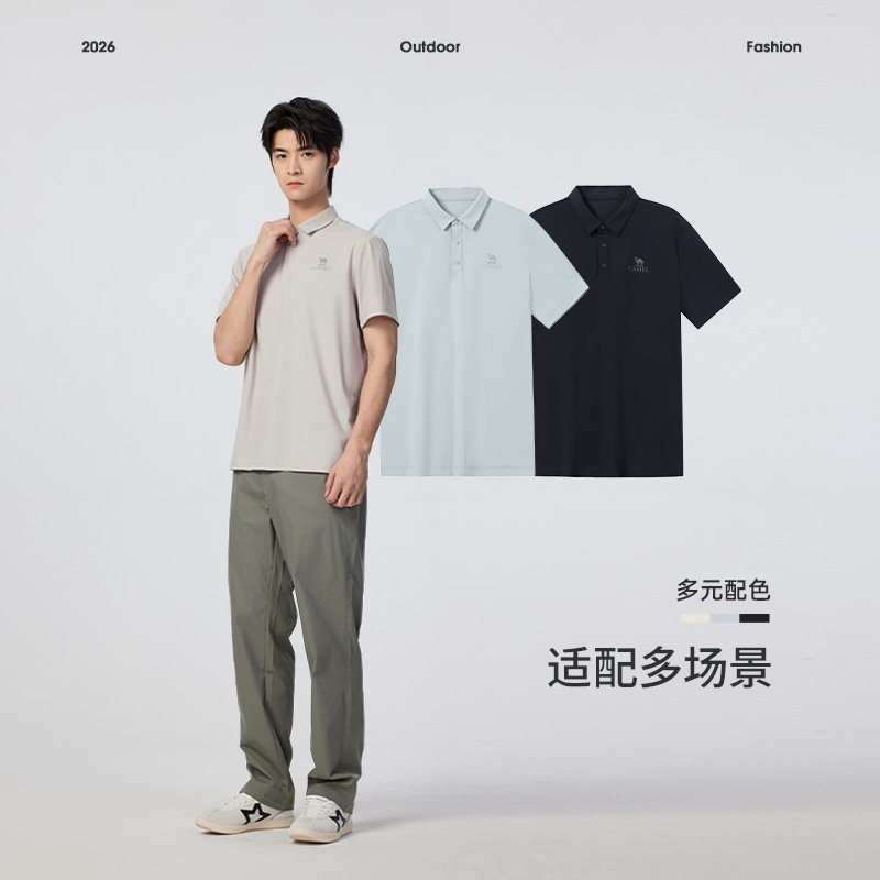 骆驼男装polo衫夏季男2026短袖吸湿速干衣透气翻领纯色t恤女