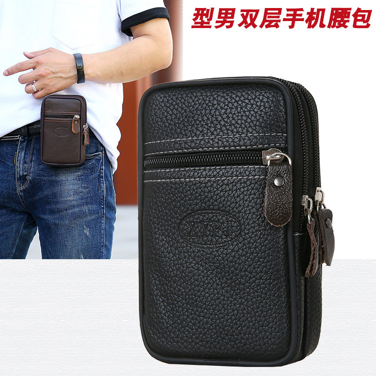 新款牛皮通用手机包男挂腰钱包老人别腰6.5寸7寸手机袋穿皮带腰包