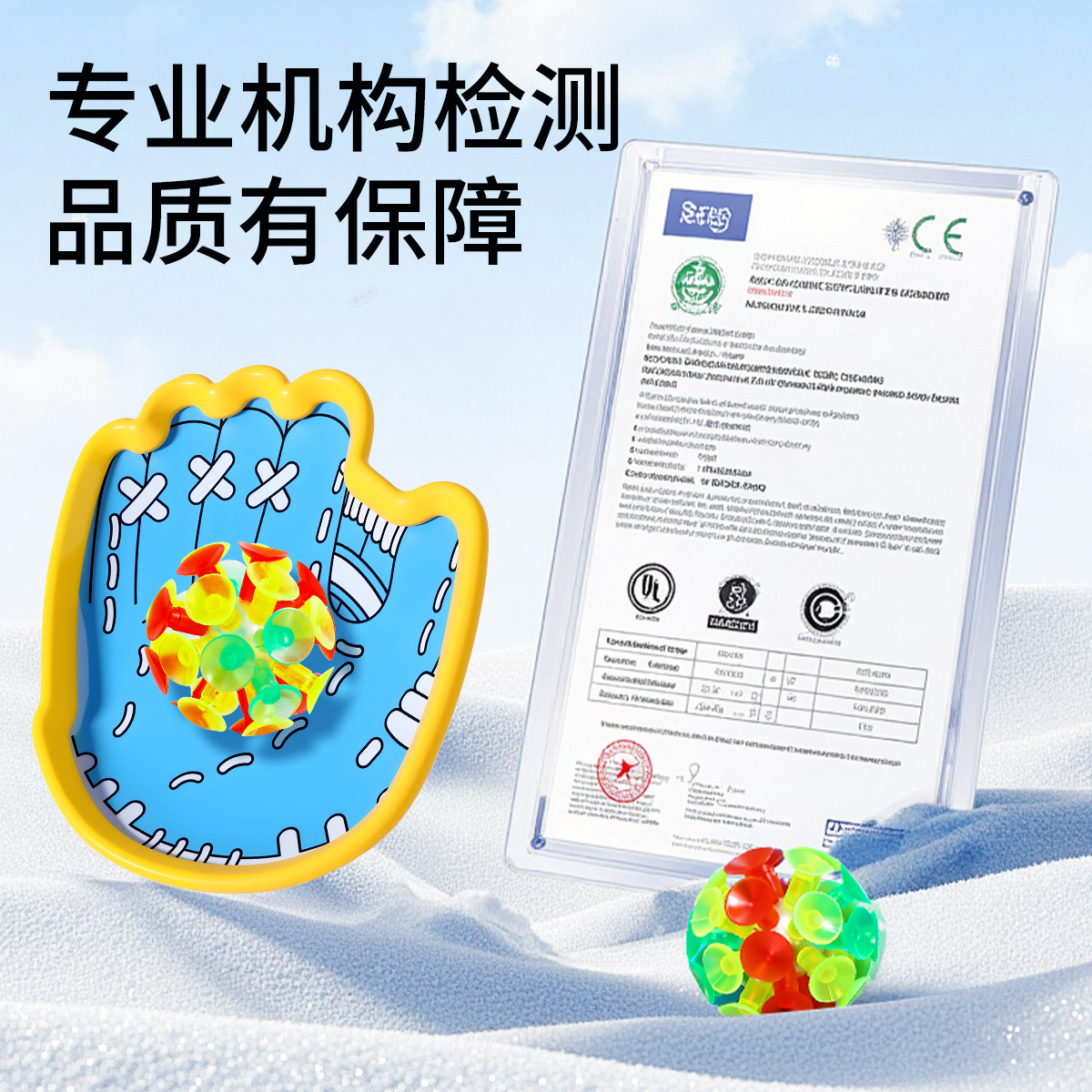 趣味抛接手掌吸盘球亲子户外室内运动粘粘球儿童益智球类玩具球拍