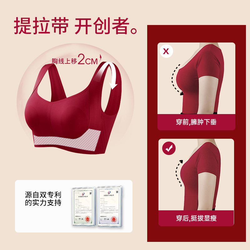 润微提拉女王内衣女大胸显小无痕大码调整防下垂收副乳粉底液文胸