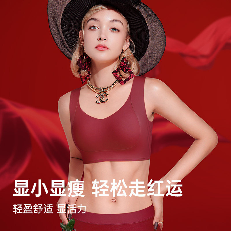 润微红色内衣套装提拉显小显瘦无痕文胸套装女马年本命年结婚新娘