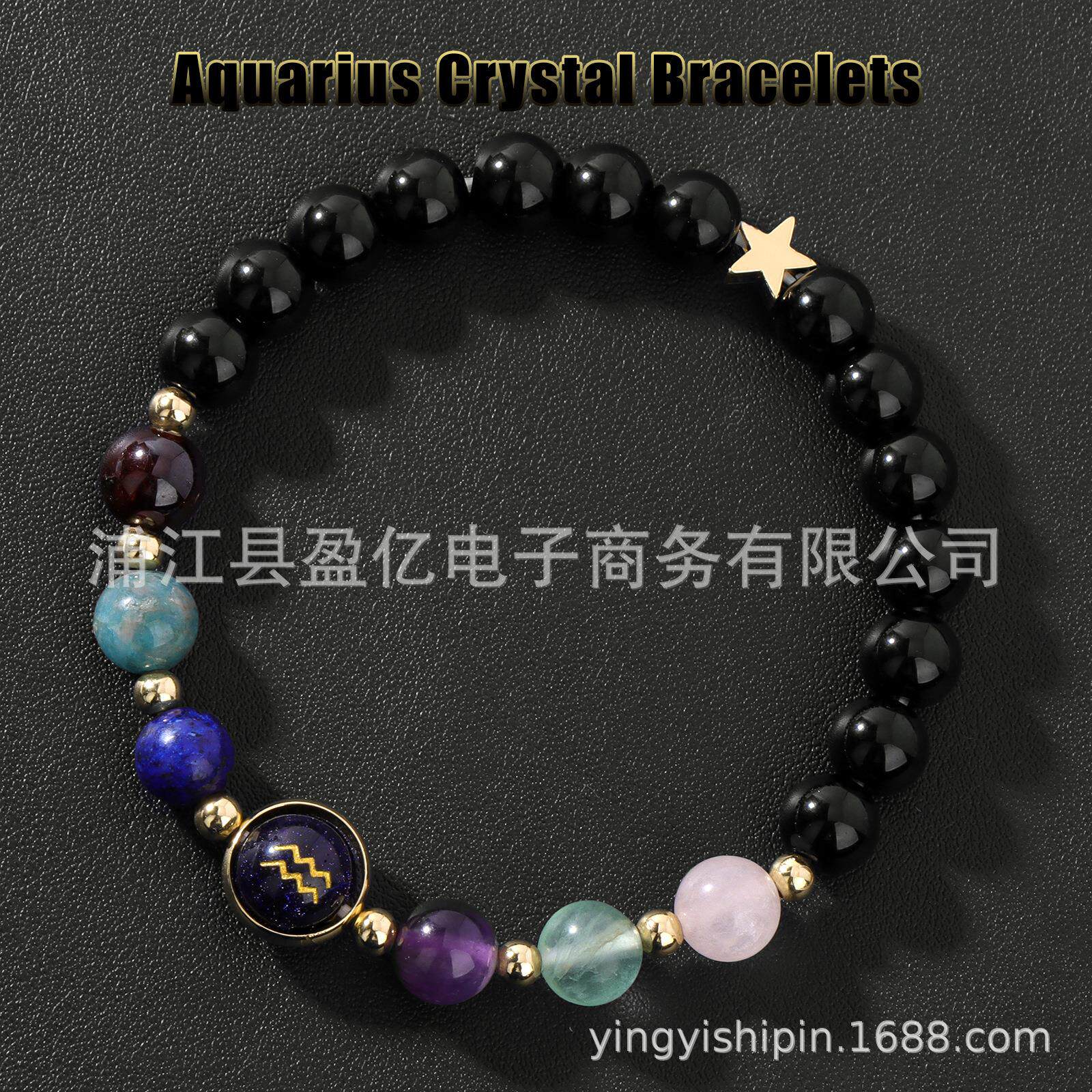 10mm蓝砂十二星座手链女天然紫水晶黑曜石隔珠手链五角星手串爆款