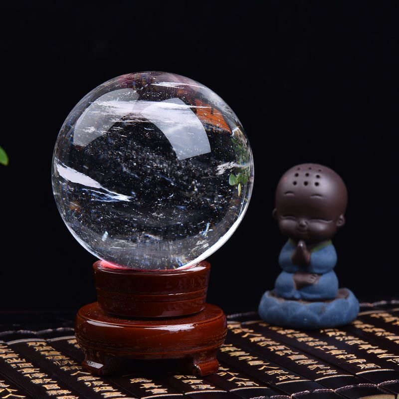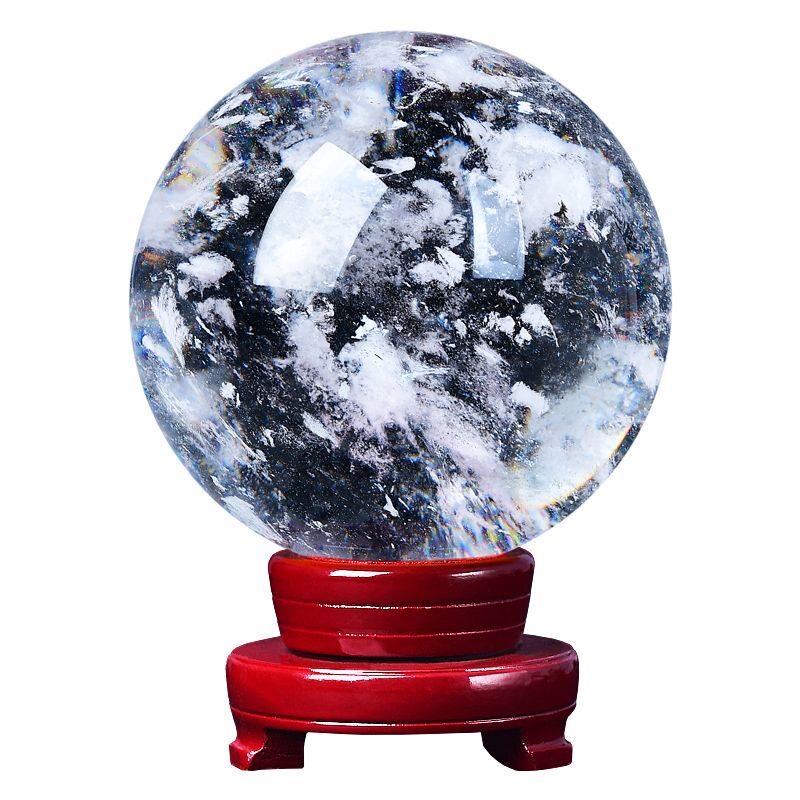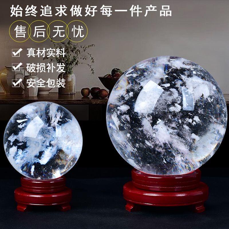天然白色水晶球摆件奇石原矿手工打磨开业乔迁高端装饰送礼风水球