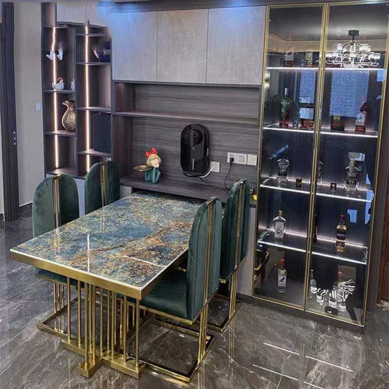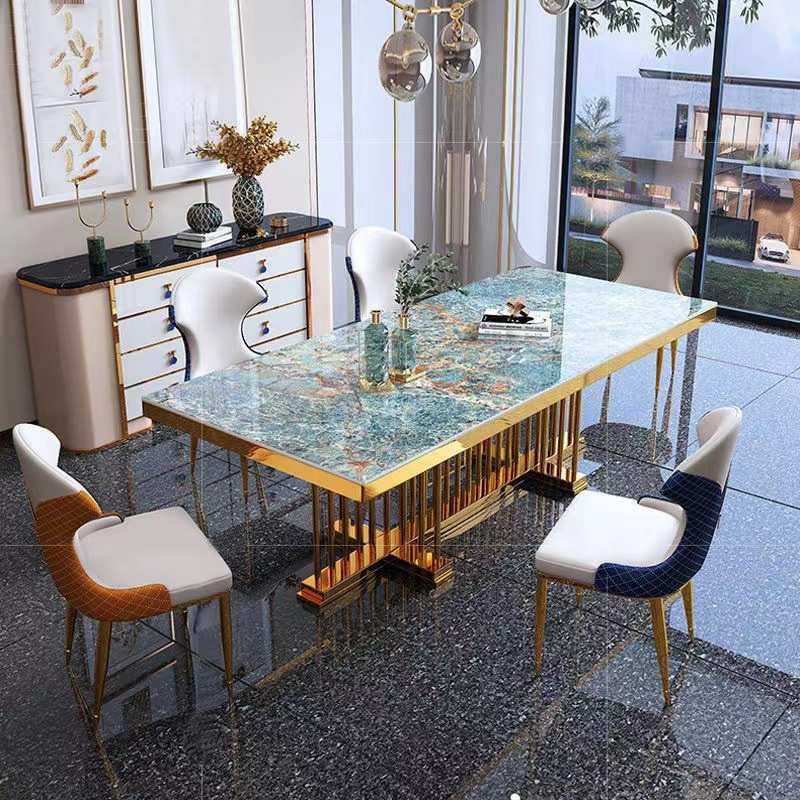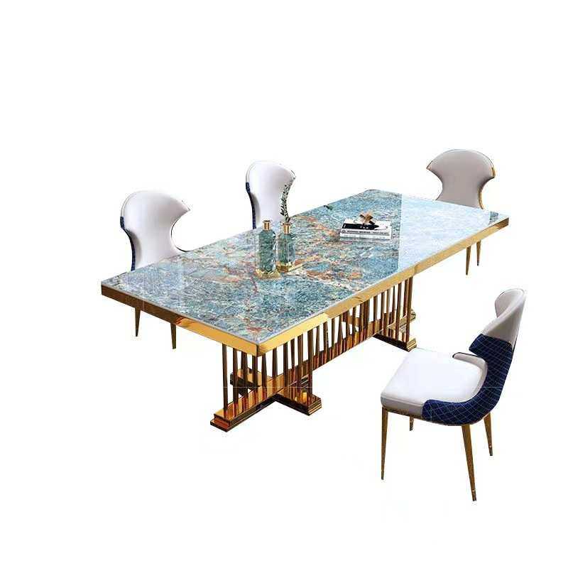 轻奢大理石餐桌长方形后现代吃饭桌简约小户型不锈钢钛金色餐桌子