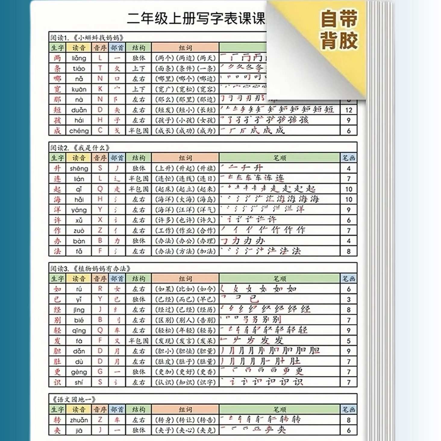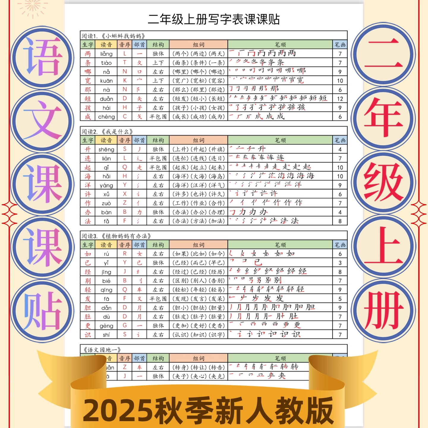 新版人教版1-6年级上下册小学生写字表生字课课贴语文课本A4彩印