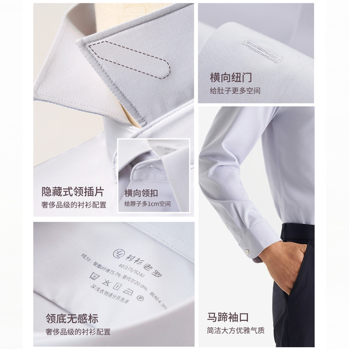 衬衫老罗[凌志一号]商务通勤长袖衬衫莫代尔男士白衬衫230T0F608L