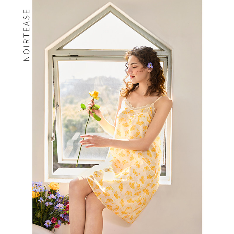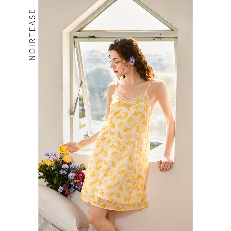 NoirTease奈黎诗睡衣女夏薄款柔软印花丝质睡裙公主风纯欲吊带裙