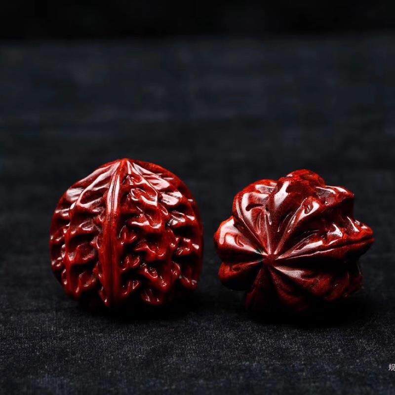 小叶紫檀雕刻核桃盘玩手把件