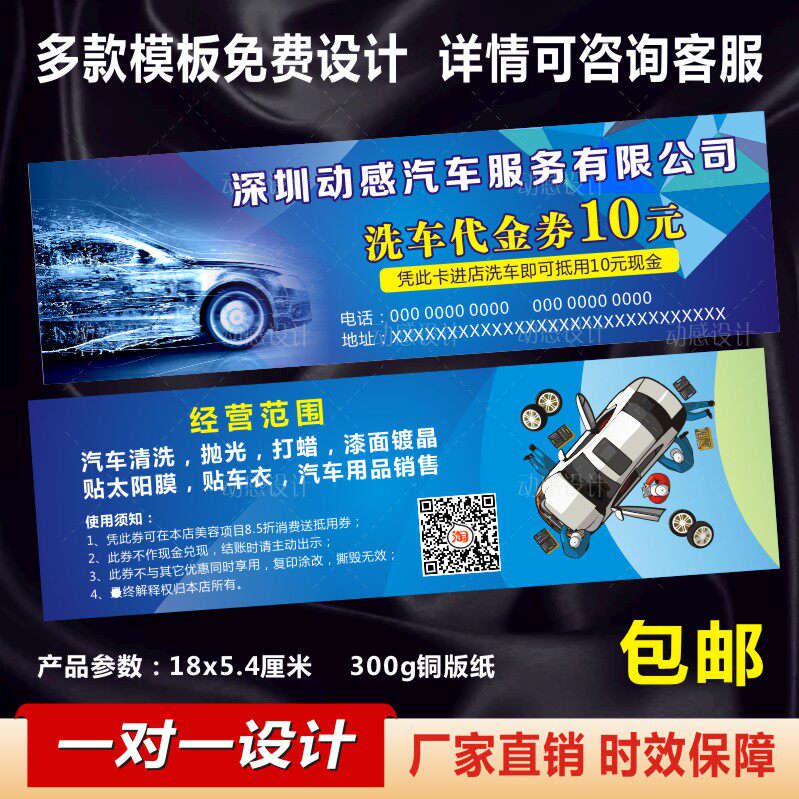 洗车卡定制汽修厂代金券印刷保养免费卷制作汽车美容店体验优惠券