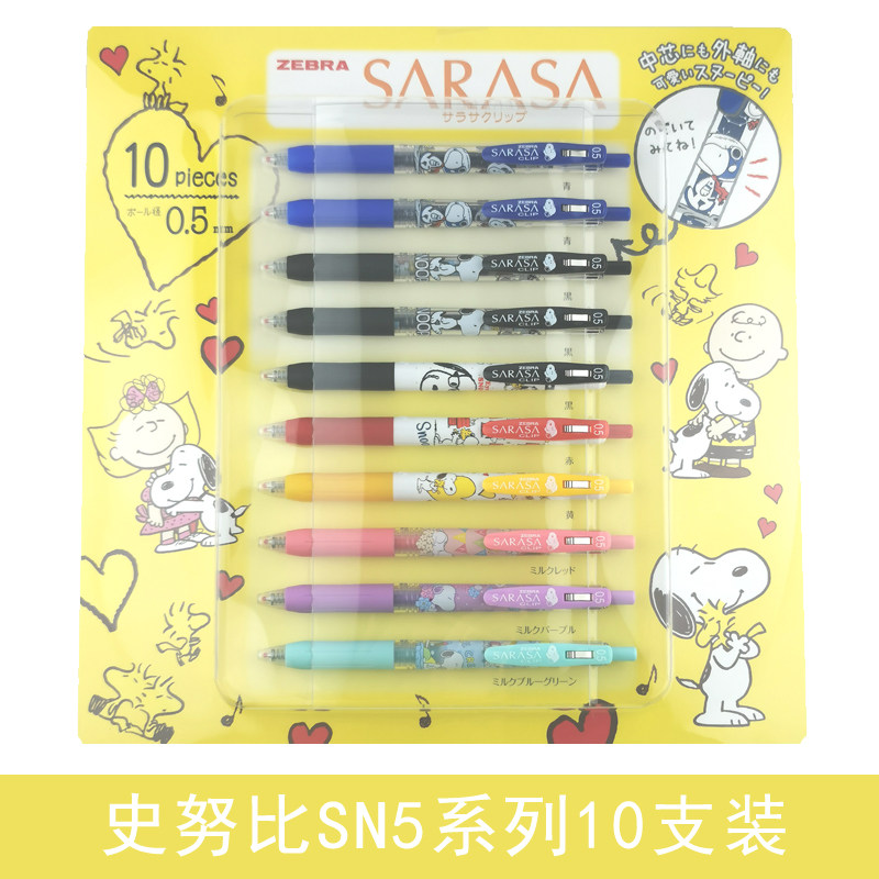 日本ZEBRA斑马JJ15限定款中性笔套装蜡笔小新皮卡丘学生考试动漫史努比卡通按动彩色黑色水笔套装0.5/0.4