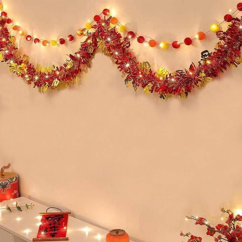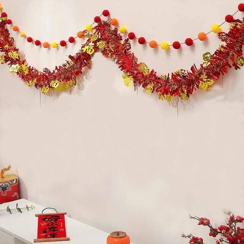 马年新年装饰元旦彩条毛条彩色拉花彩带新年元旦布置套装挂饰用品
