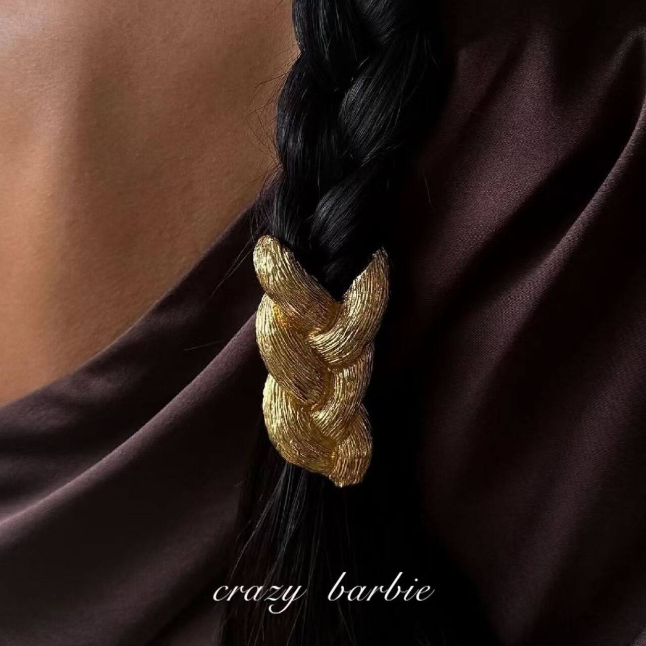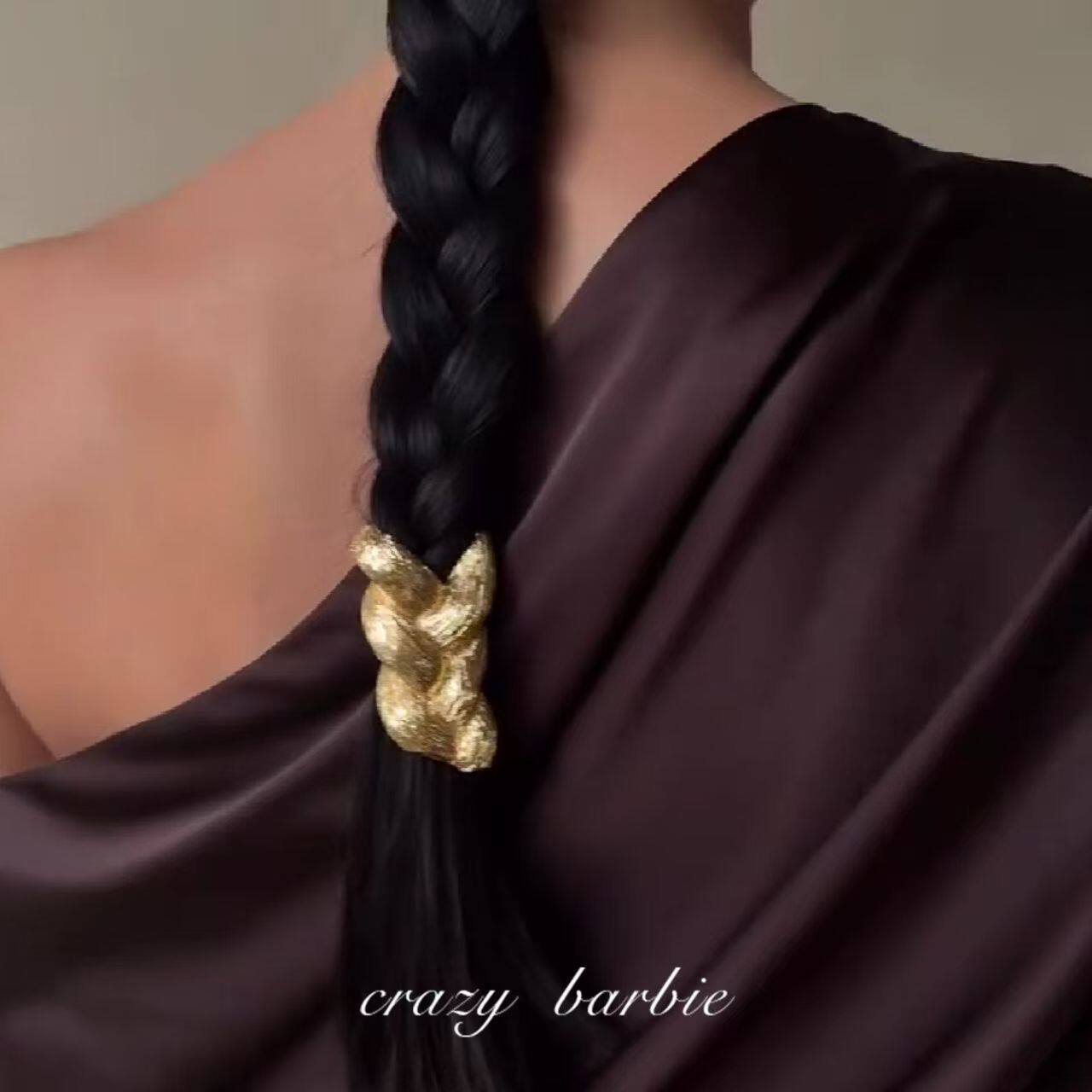 欧美博主同款金色金属麻花发绳发圈头饰头绳女艺术造型感扎发新款