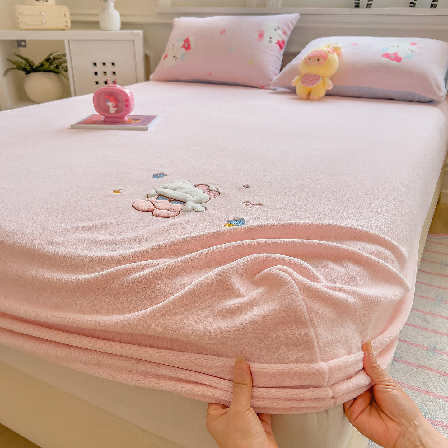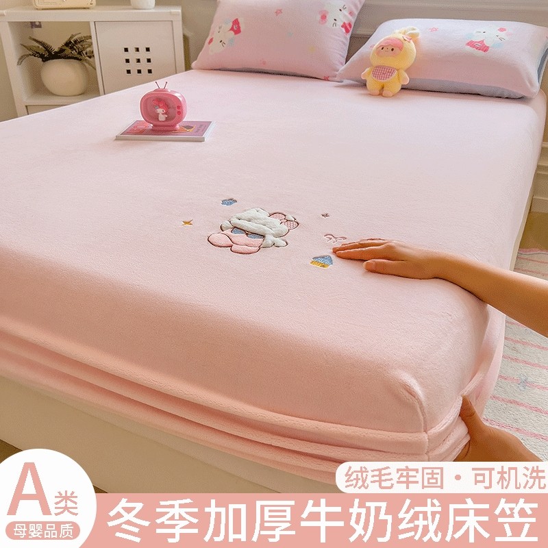 花花公子牛奶绒床笠单件加厚冬季珊瑚绒床罩床垫套席梦思保护套