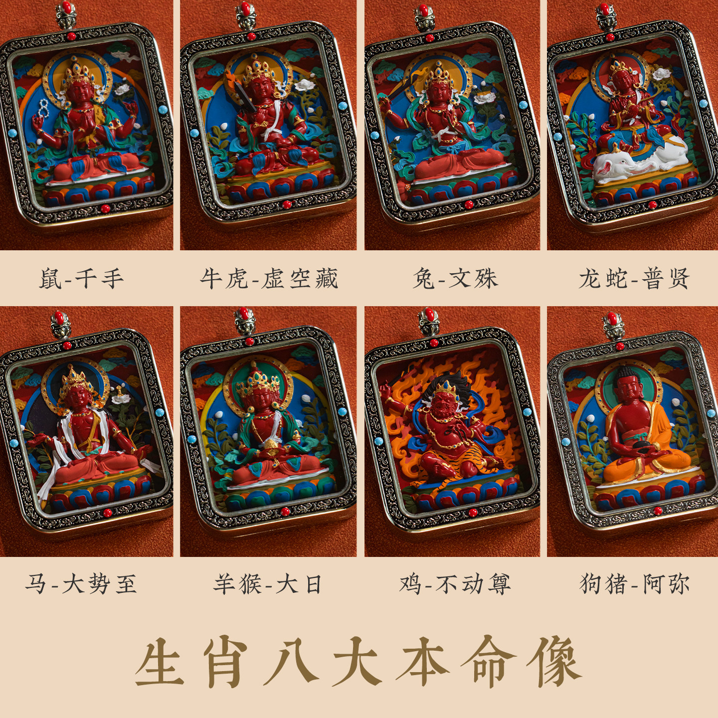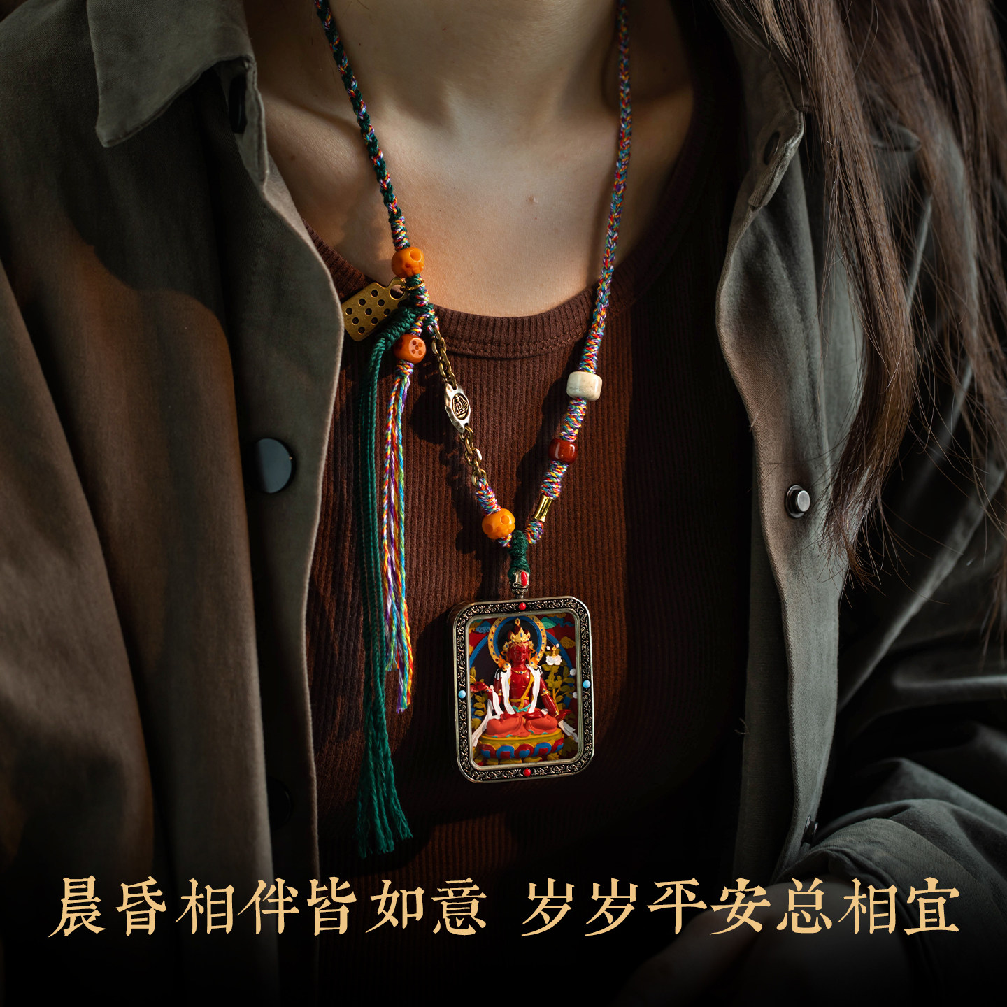 大善堂朱砂手绘藏式唐卡吊坠手工编织多宝蜜蜡生肖本命吊坠马年礼