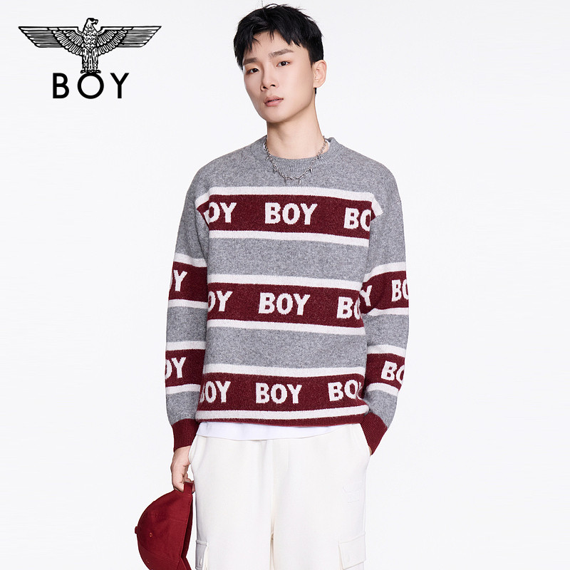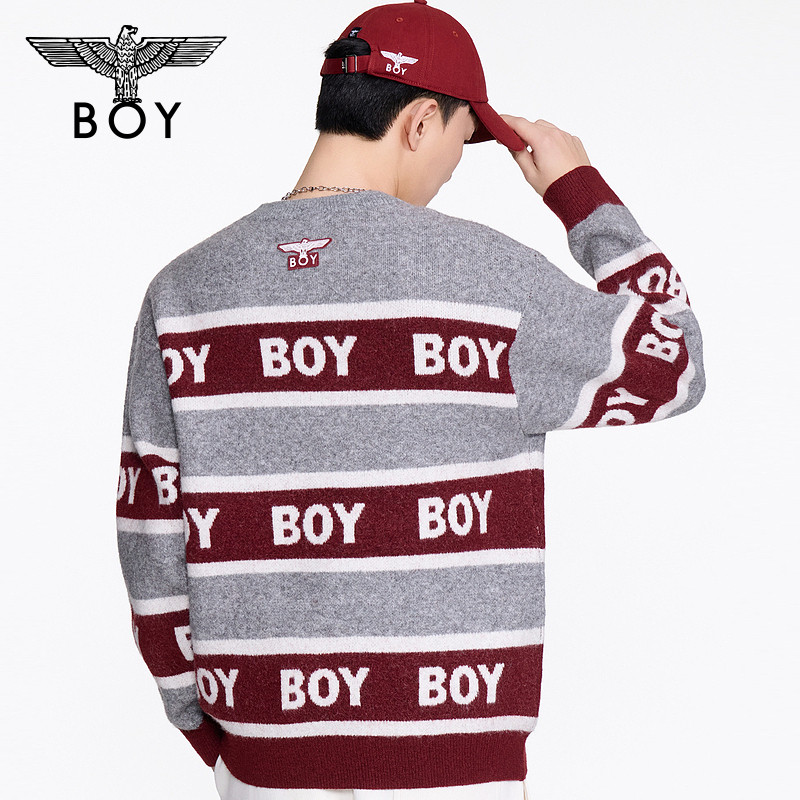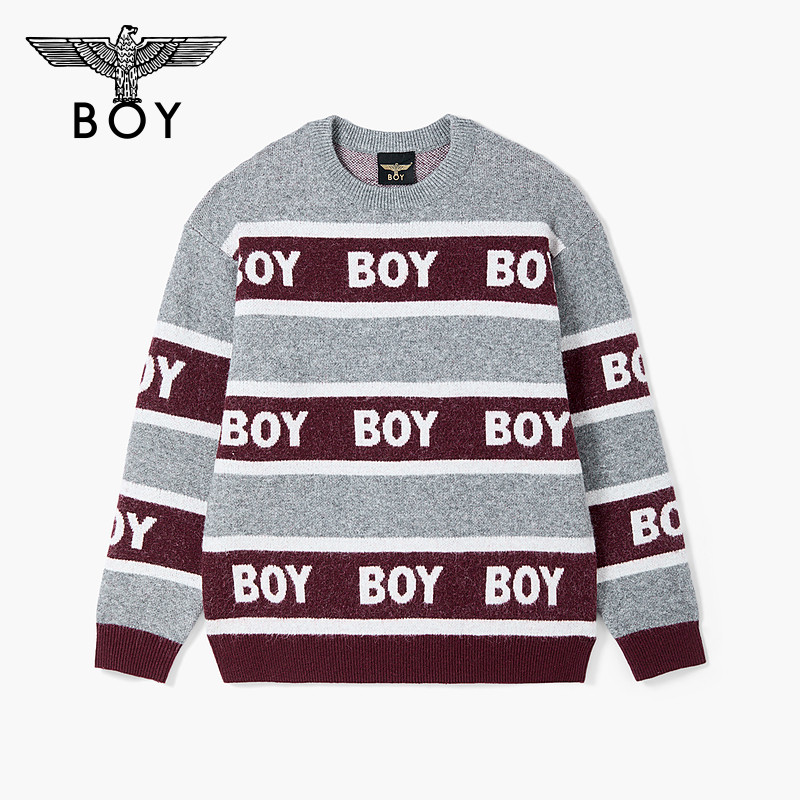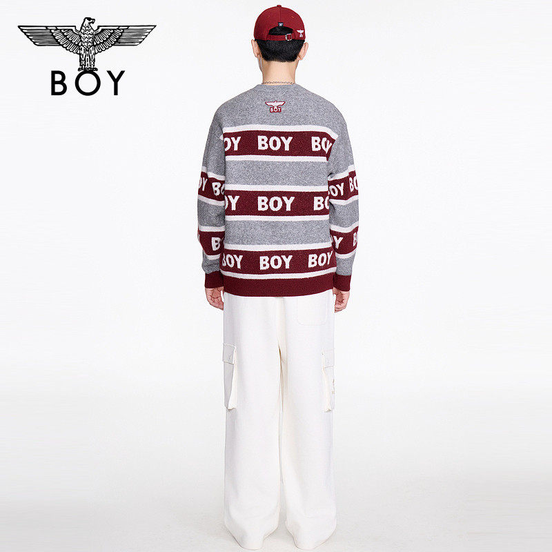 BOYLONDON2025新款春圆领情侣混纺条纹撞色套头针织毛衣N60012