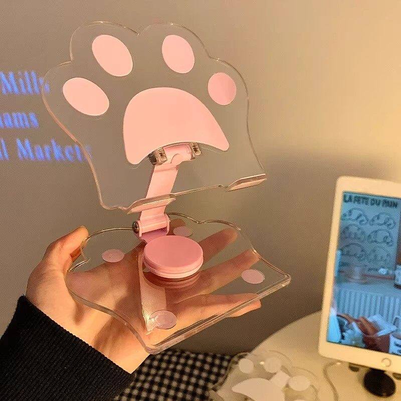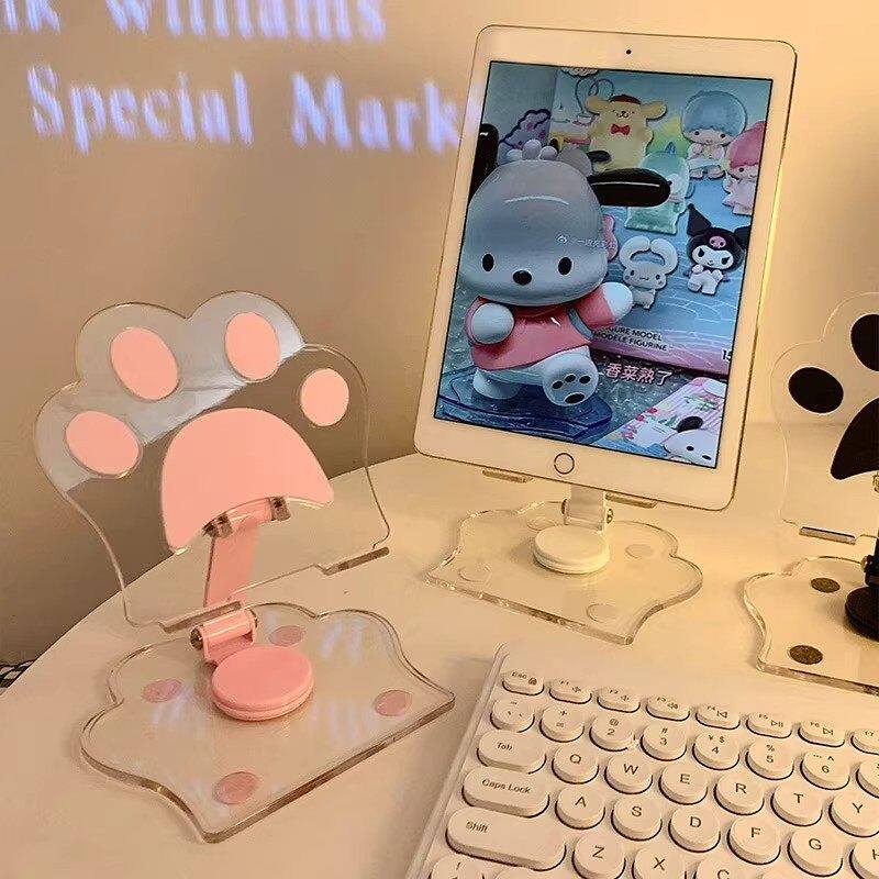 猫爪亚克力360旋转手机支架桌面ipad支架多功能通用平板支撑架便携式可折叠可调节直播支架懒人床头网课神器