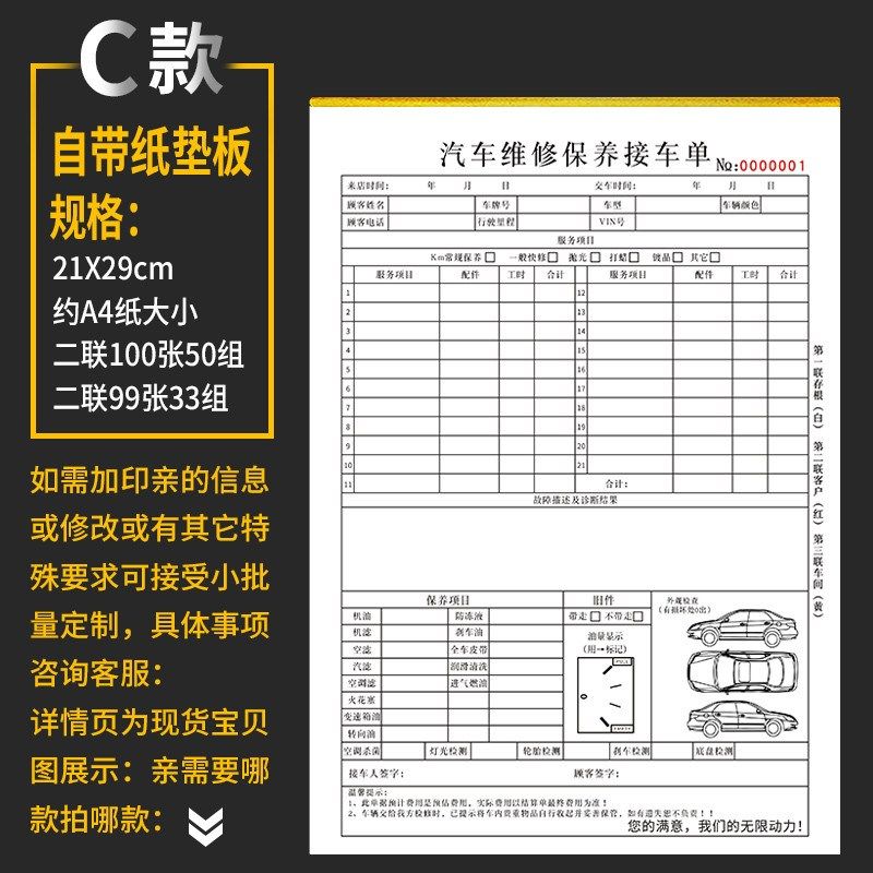 定做汽车维修单修理厂接车单汽修美容派工施工单二联服务结算厂家