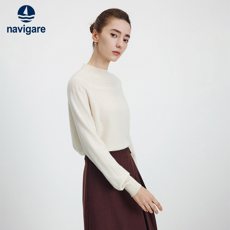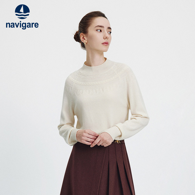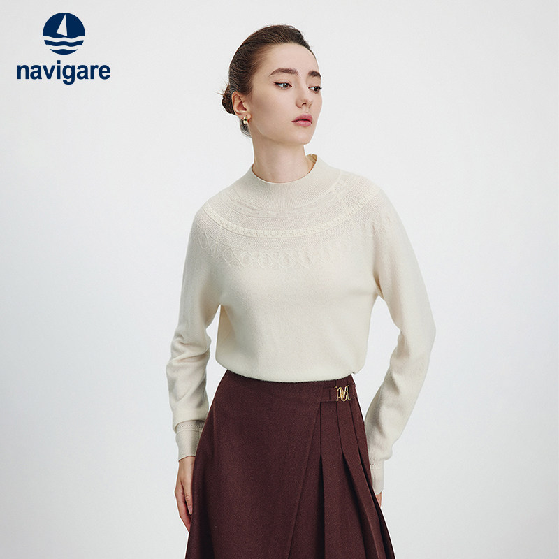 [羊绒]Navigare意大利小帆船白色羊毛衫费尔岛毛衣女秋季针织衫
