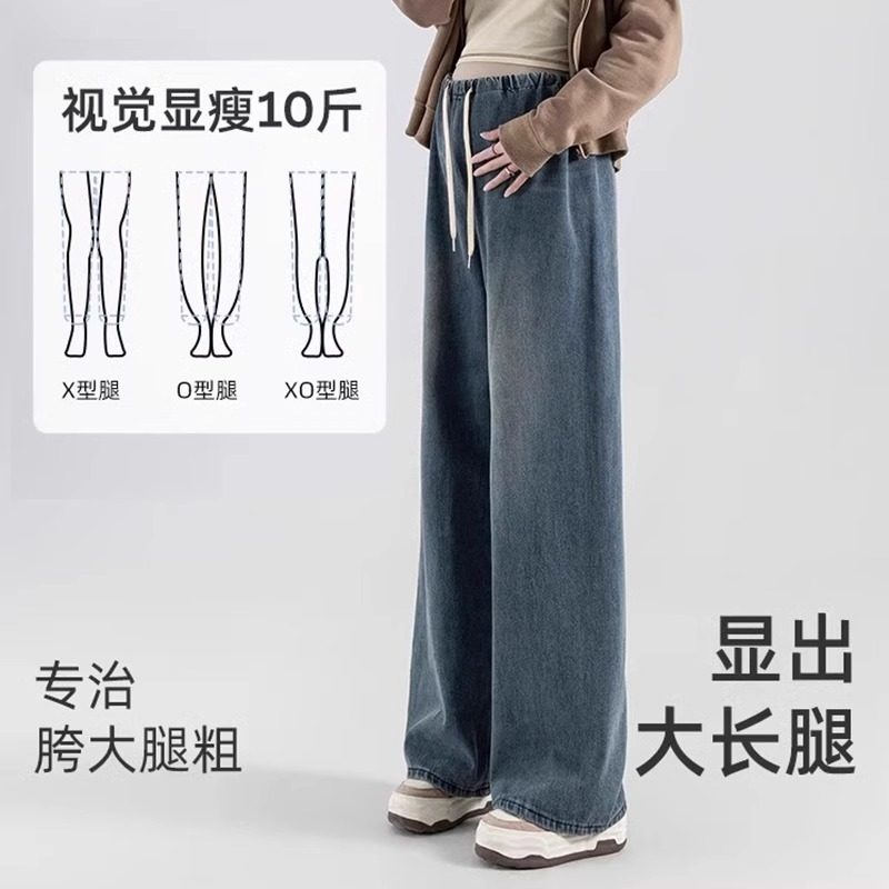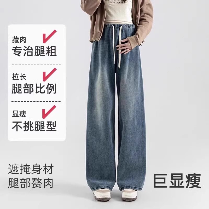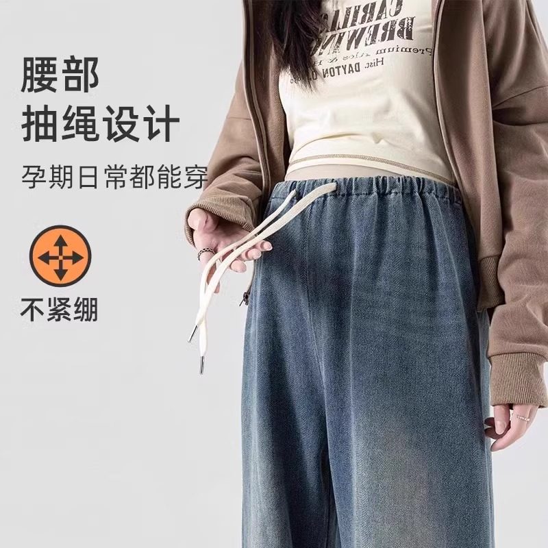 孕妇裤子无托腹牛仔裤外穿阔腿裤新款秋装抽绳松紧腰不勒肚休闲裤