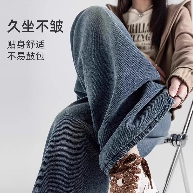 孕妇牛仔裤秋冬季加绒加厚外穿大码宽松高个子孕期不勒肚子阔腿裤