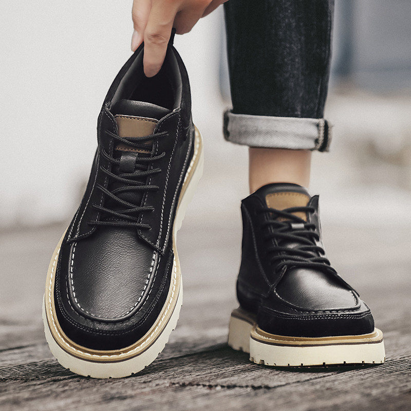 男士秋冬季新款马丁靴子潮流加绒棉皮靴百搭高帮工装鞋男机车短靴