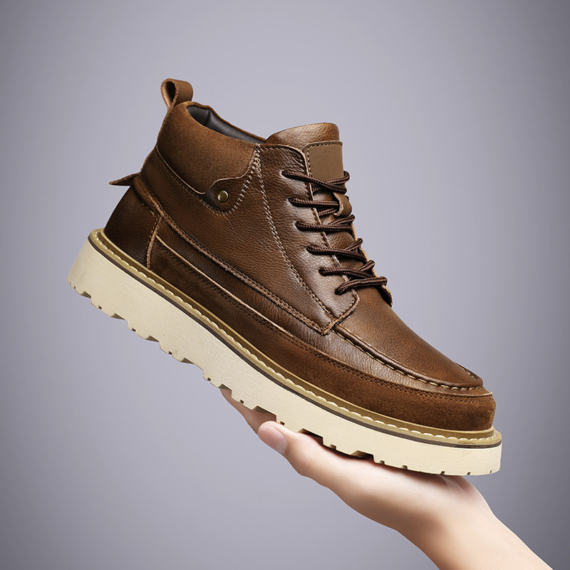 骆驼马丁靴男鞋工装加绒加厚保暖户外男款休闲中高帮时装靴子秋冬