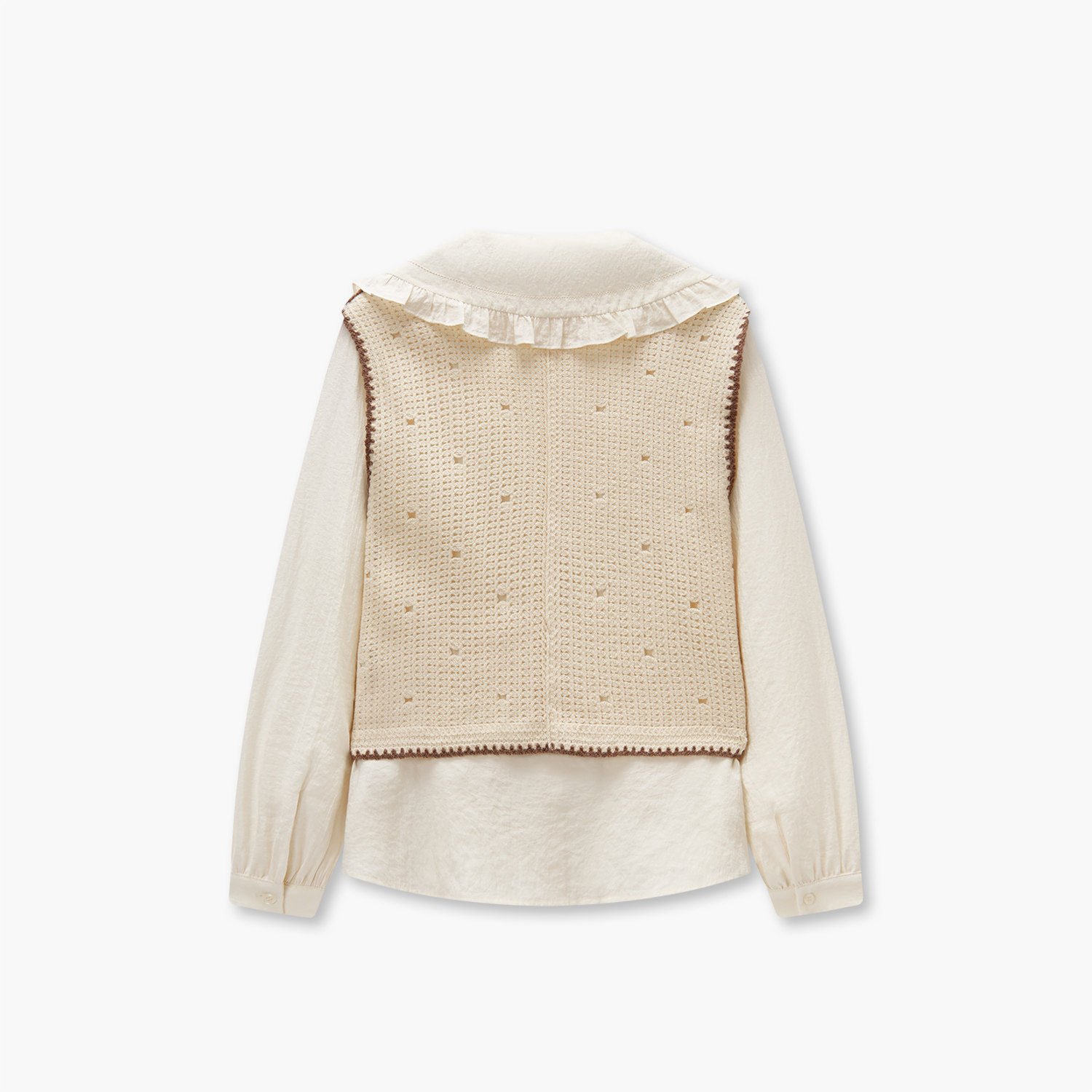 爱居兔减龄两件式衬衫女2025年秋季新款针织马甲长袖衬衫套装