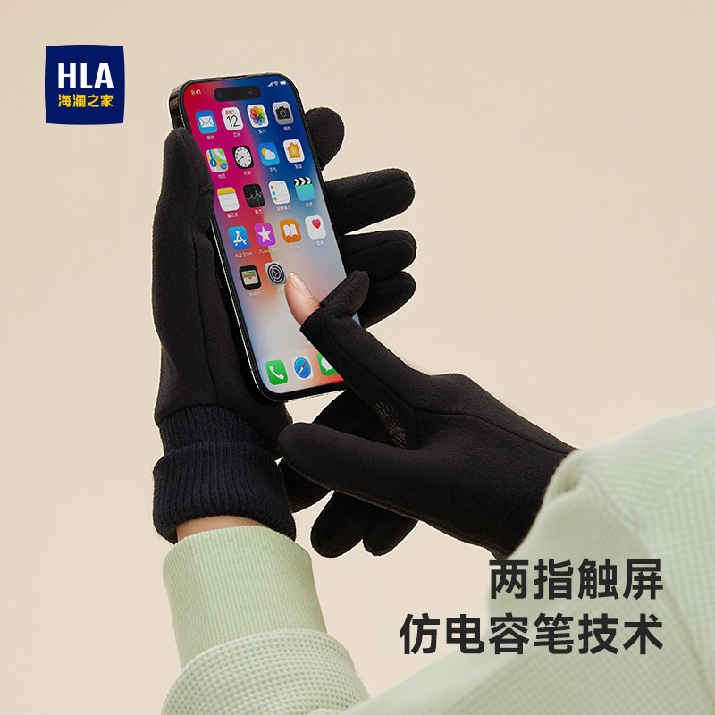 海澜之家德绒手套男士新款秋冬保暖加绒布艺女款舒适户外骑行触屏