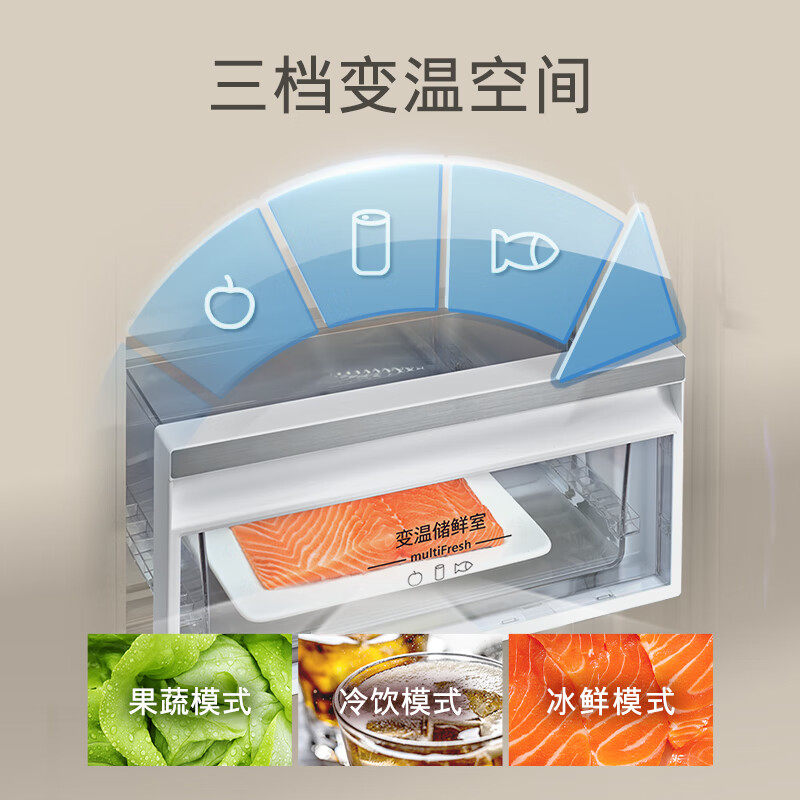 新飞252L除菌净味变频风冷压缩机十年质保一级家用节能三门电冰箱