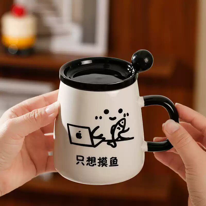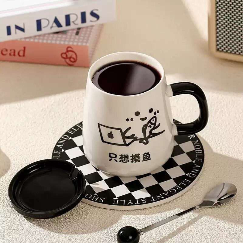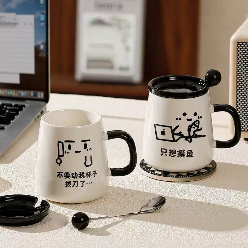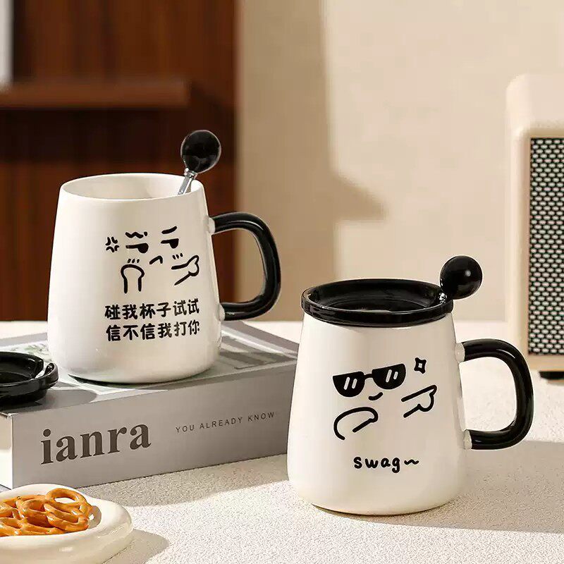 搞怪创意马克杯带盖勺陶瓷杯子情侣家用喝水杯女男生办公室早餐杯