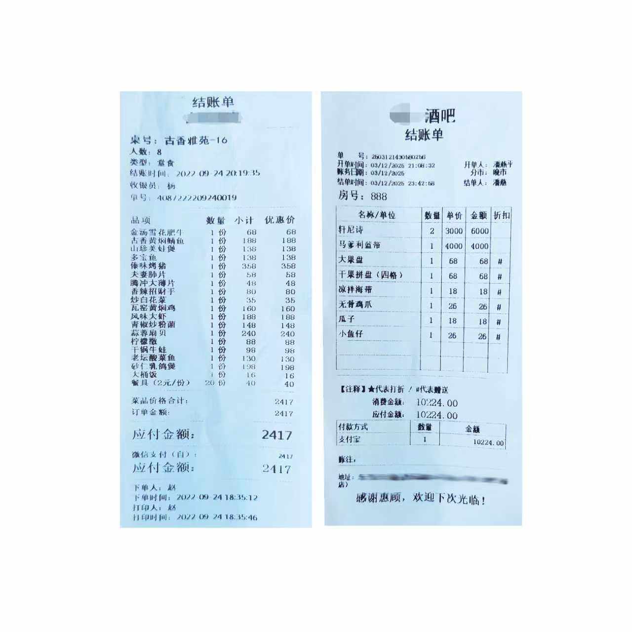 代打印酒店餐饮超市购物清单小票据住宿水单打印结账点菜单