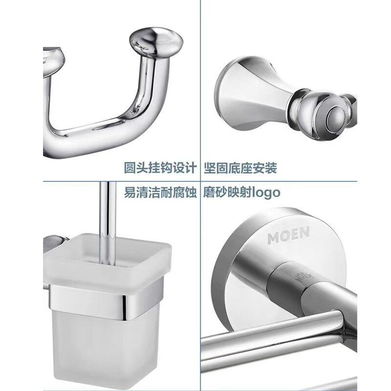 摩恩毛巾架浴巾架毛巾杆置物架浴室卫生间 304不锈钢卫浴挂件套装