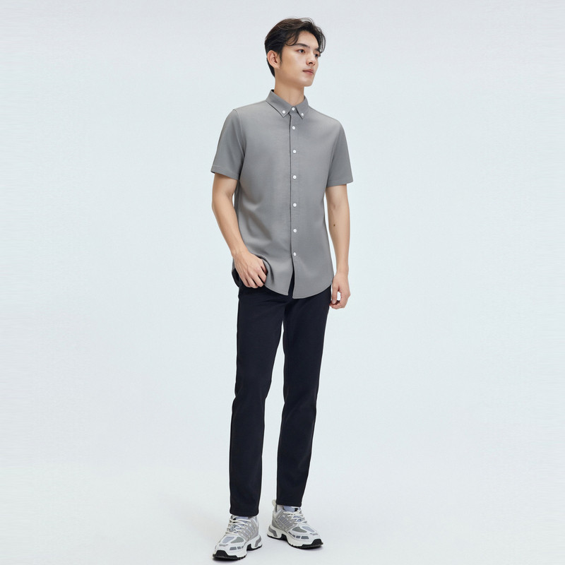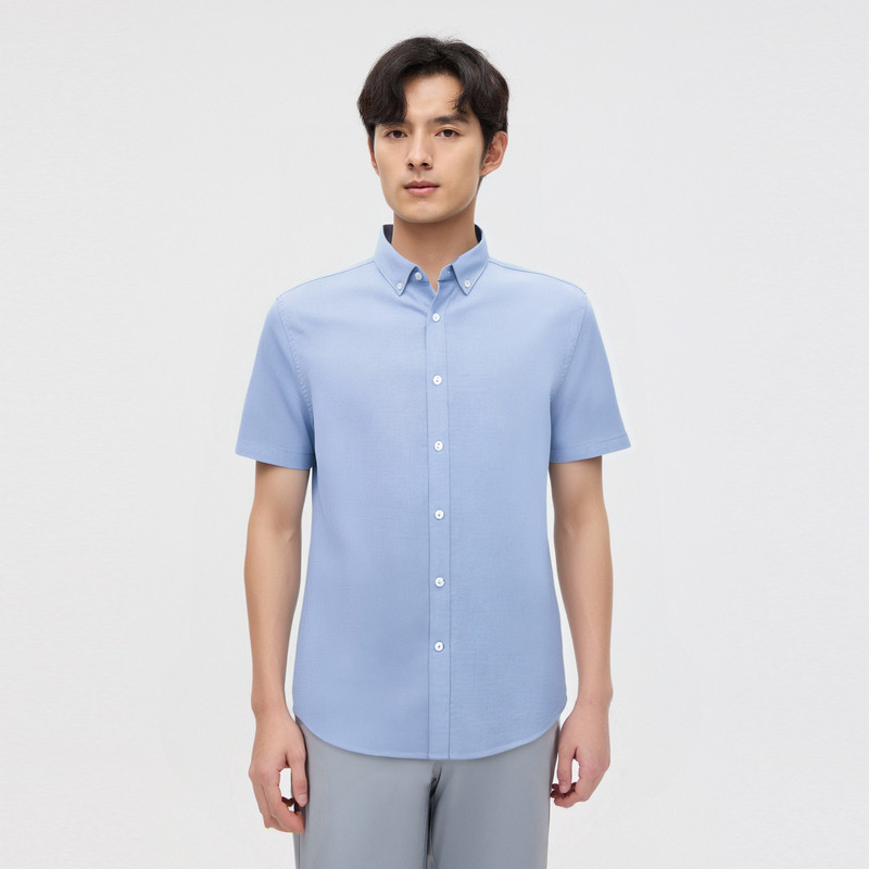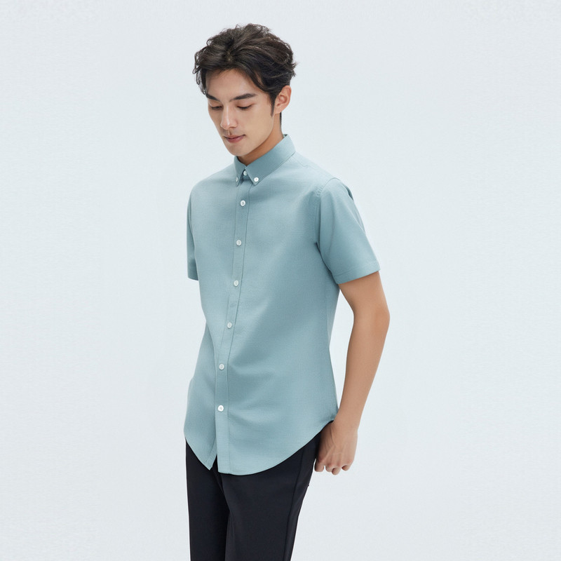 圣得西男士短袖衬衫易打理水洗牛津纺上衣商务通勤简约多色男装