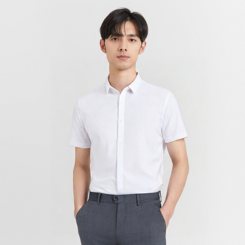 HLA/海澜之家山不在高纯棉牛津纺短袖白色衬衫春夏休闲透气上衣男