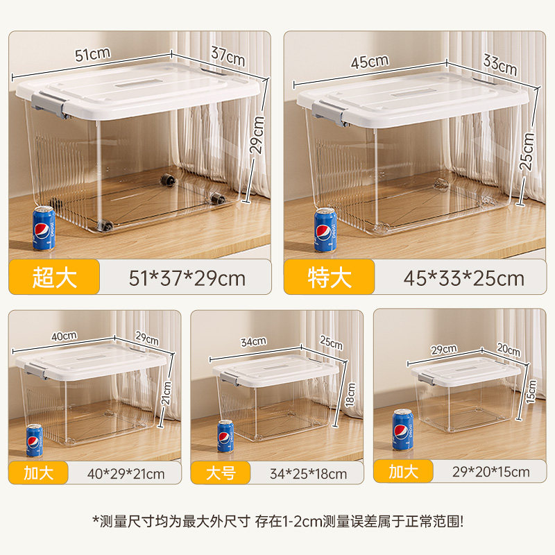 透明收纳箱超大容量带盖塑料整理箱家用衣服零食书本杂物储物箱子