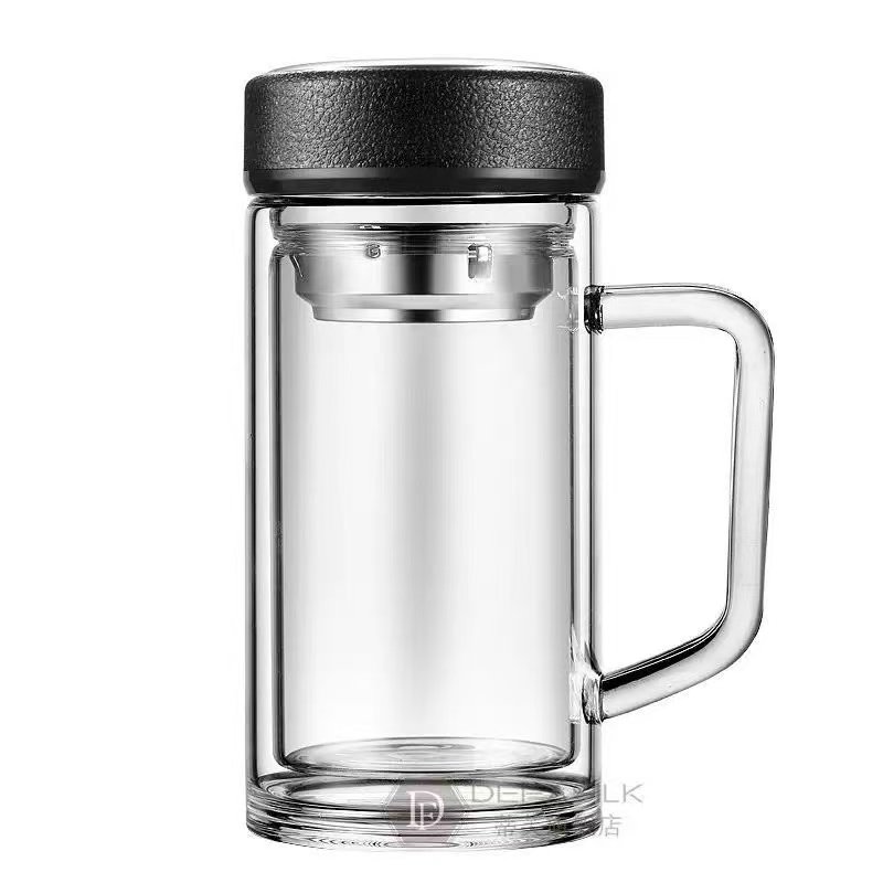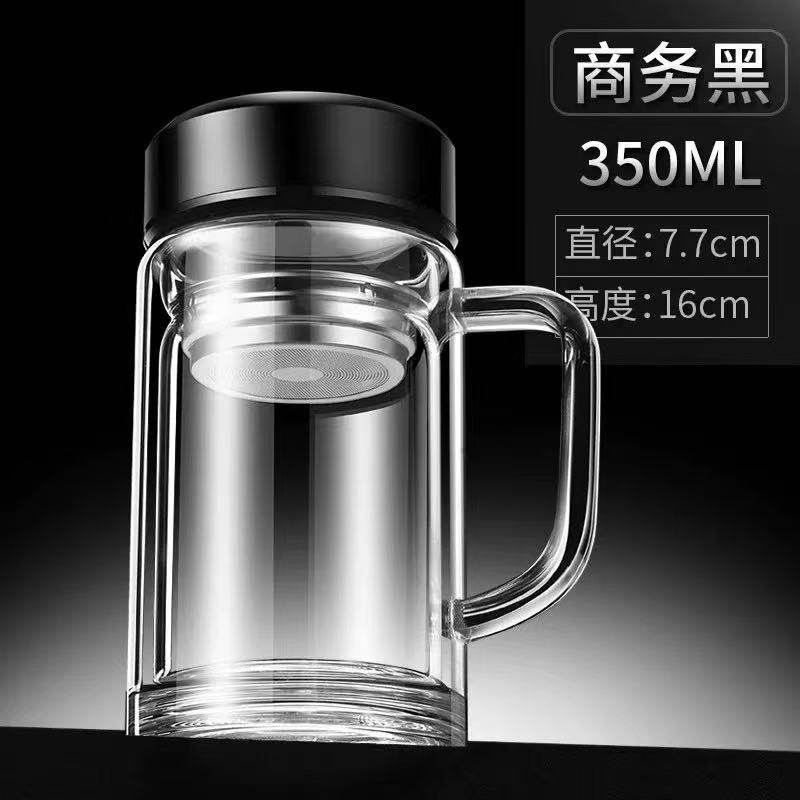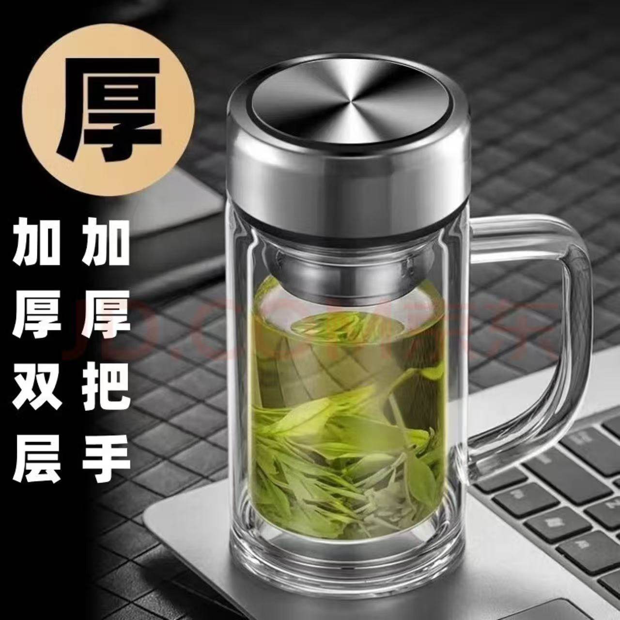 双层玻璃杯水杯茶杯把杯子男士女透明便携家用商务