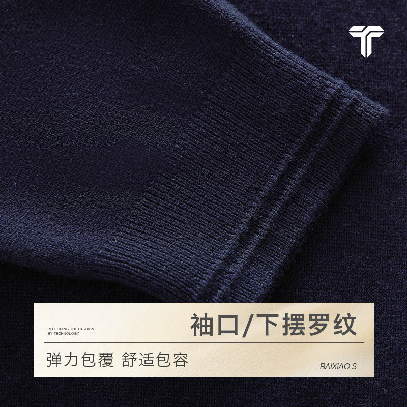 鄂尔多斯市半高拉链领中年冬季加厚保暖套头打底衫爸爸羊绒毛衣男