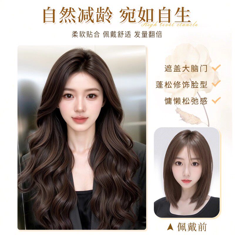 不用戴发网假发女片头顶补发增发量蓬松高颅顶遮白发大波浪长卷发