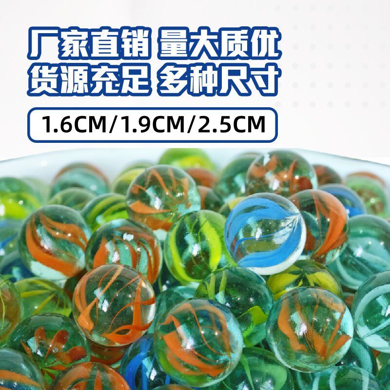 童年溜溜球幼儿园玩具打弹珠彩色七彩漂亮透明纯色夹玻璃珠子16mm