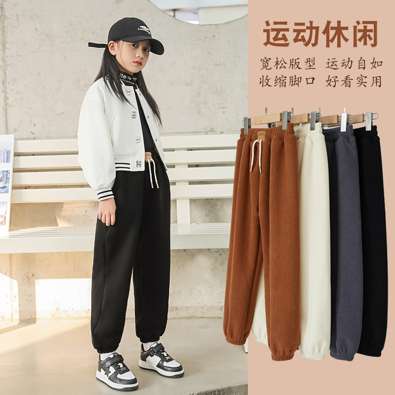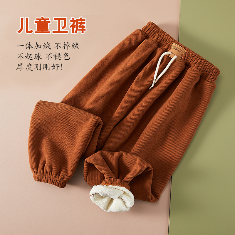 儿童加绒裤子秋冬款男女童加厚一体绒休闲裤洋气外穿薄绒运动卫裤