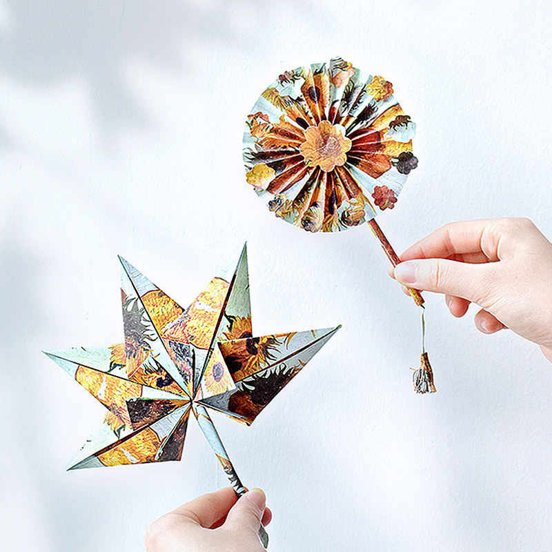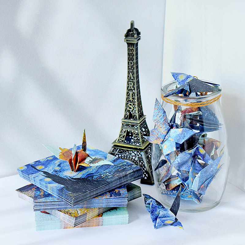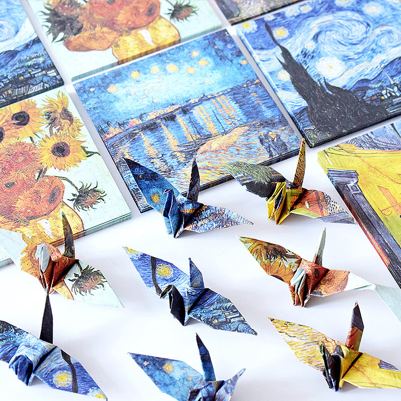 印象油画风千纸鹤折纸专用纸梵高作品印花正方形方纸彩纸幼儿园儿童小学生暑假作业diy手工制作彩色扇子礼物