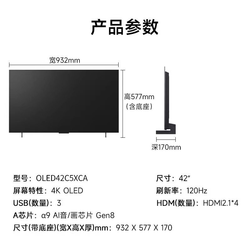 官旗同款LG42英寸OLED电竞游戏4K高清电视144Hz高刷OLED42C5X 151