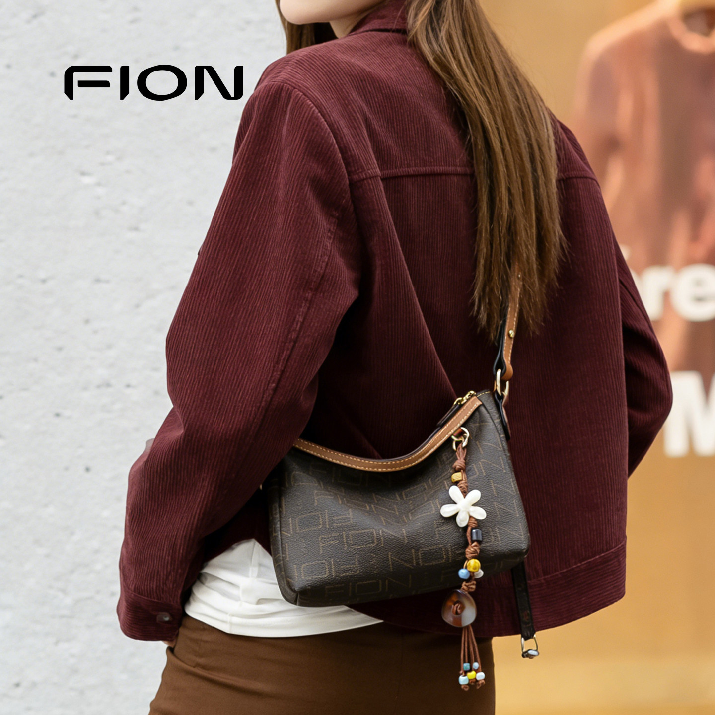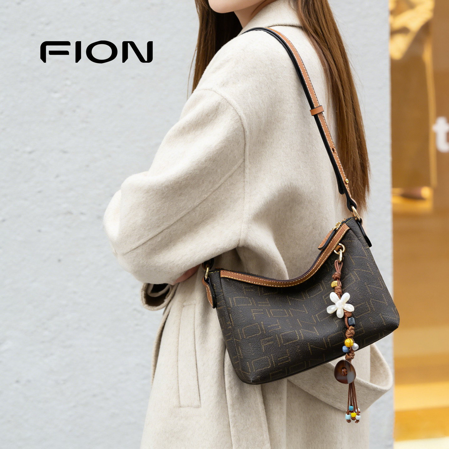 【情人节礼物】Fion/菲安妮女包老花通勤复古时尚单肩斜挎hobo包