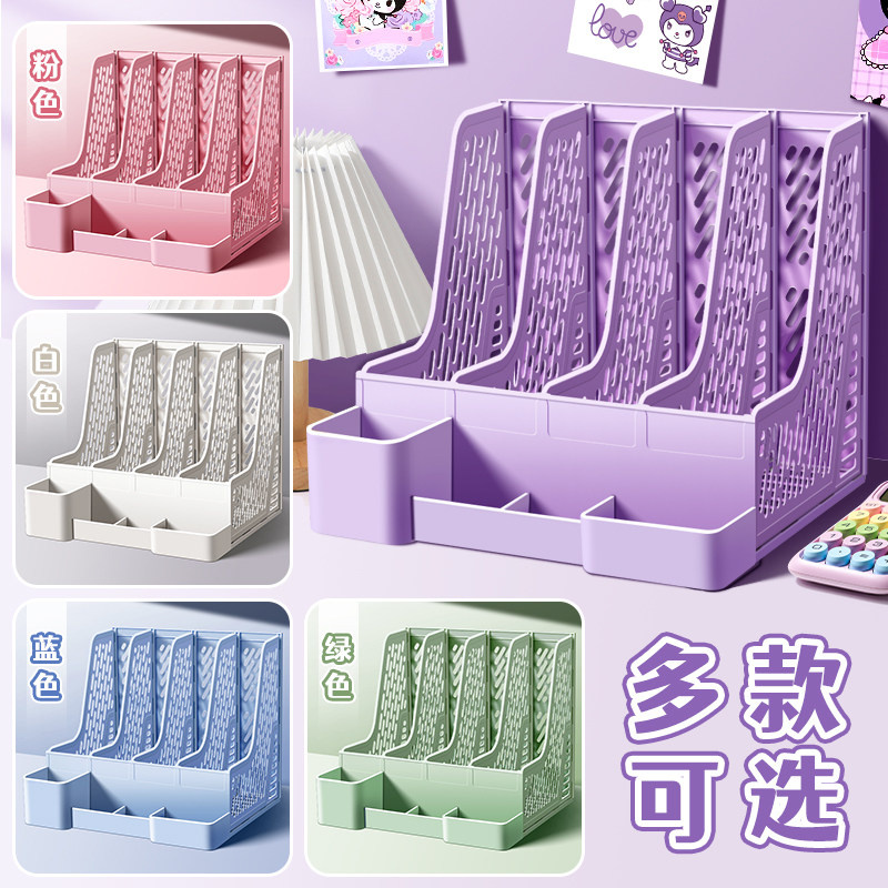 智权文件收纳盒书架桌上书立架儿童学生书本A4四联小文件框筐立式置物架不占空间多层办公桌书桌文件栏收纳盒