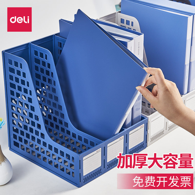 得力加厚文件框文件收纳盒塑料文件架书架黑色简易立式书立书架桌面办公用品大全文件夹架筐文件盒桌上资料架