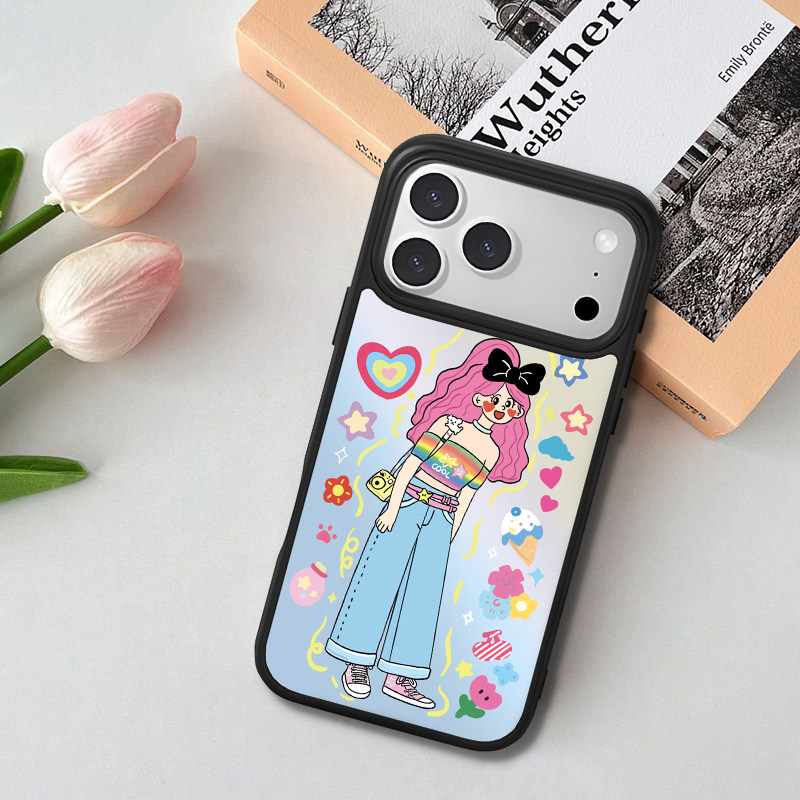 适用iPhone17promax手机壳可爱女孩文字图案个性卡通动漫全包款16pro少女心创意设计磁吸苹果15高颜值保护套