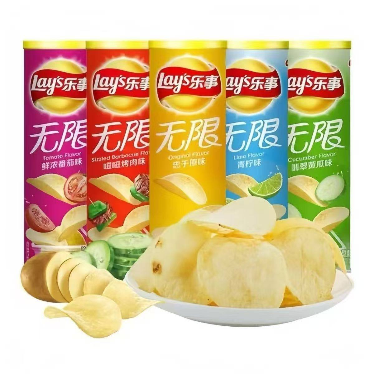 乐事薯片罐装90g小吃批发零食大礼包解馋黄瓜味原味休闲青柠味
