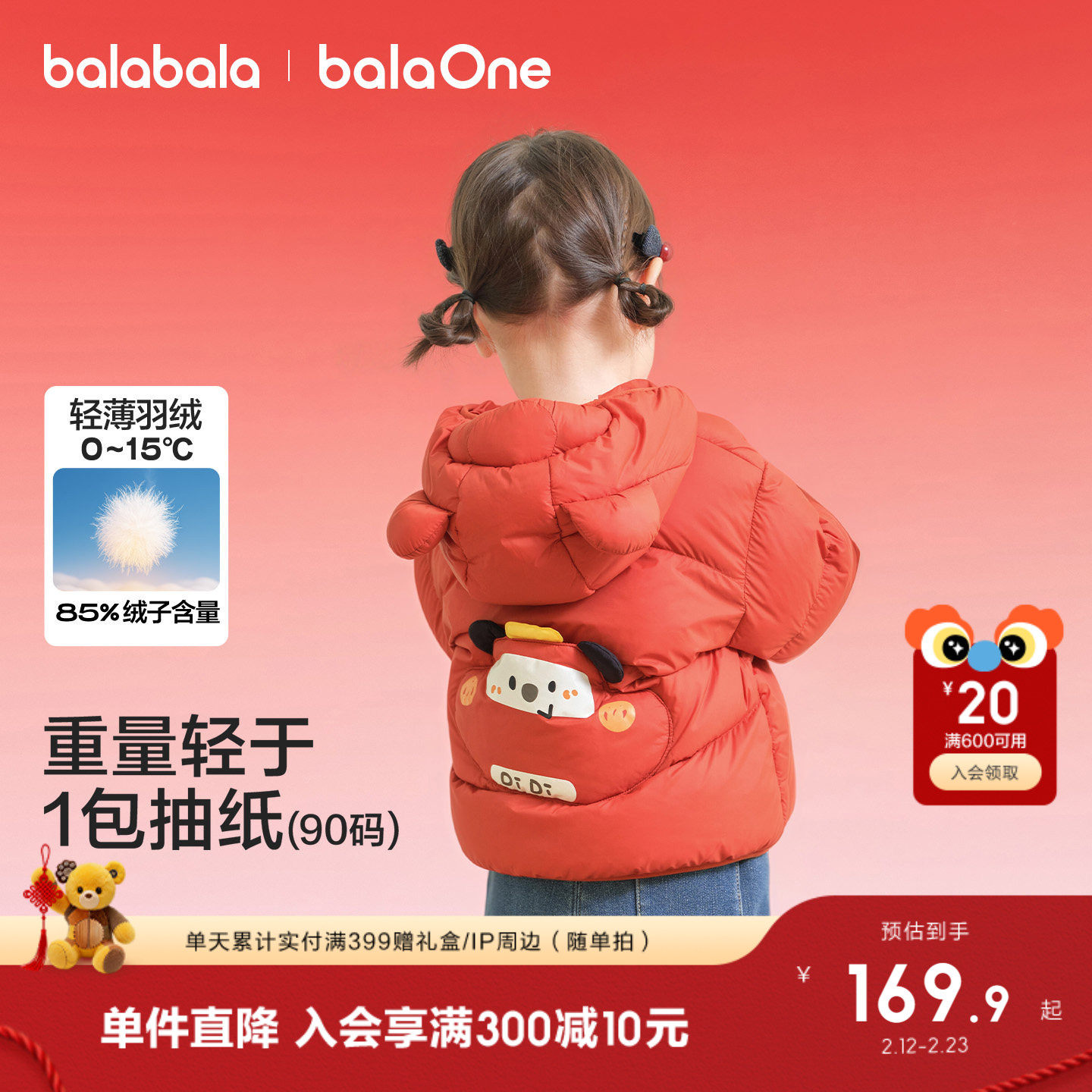 巴拉巴拉童装宝宝羽绒服冬装2025新款婴儿轻薄儿童外套红色拜年服